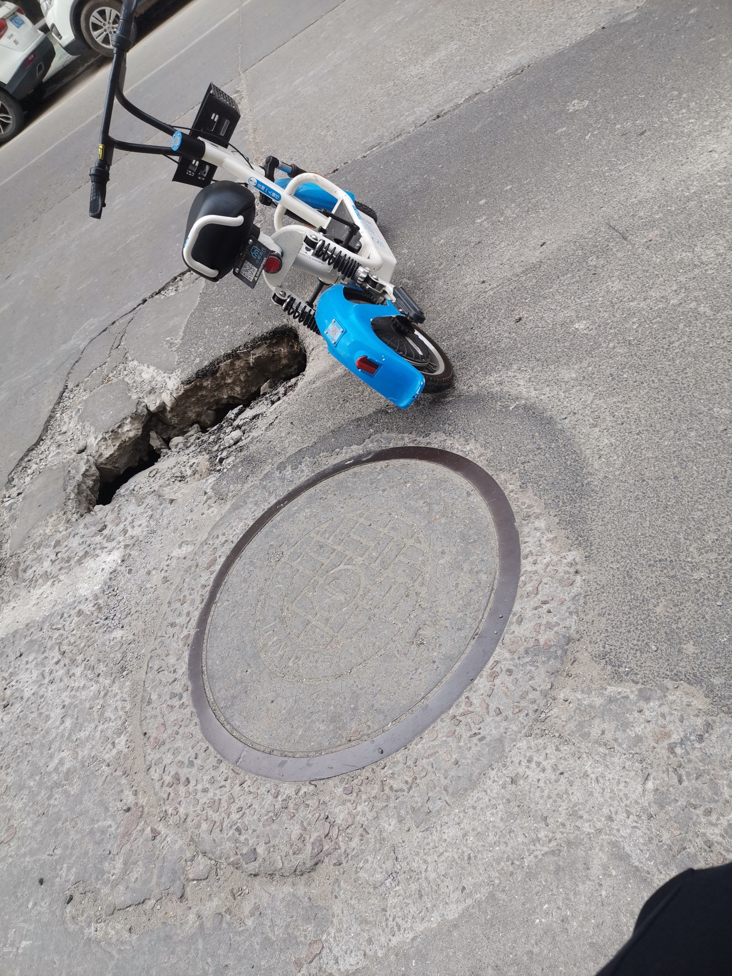 柳市长江路上来往车辆小心坑 下面可能塌了!