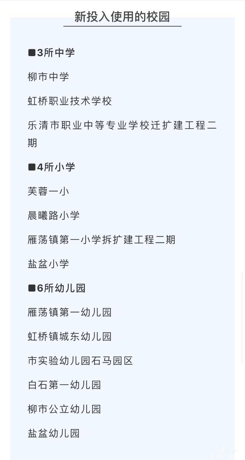 本帖最后由 甲乙木有丁 于 2021-8-31 16:21 编辑 3所中学 柳市中学 虹桥职业技术学校 乐清市职业中等专业学校迁扩建工程二期 4所小学 芙蓉一小 晨曦路小学 雁荡镇第一小学拆扩建工程二期 盐盆小学 ...