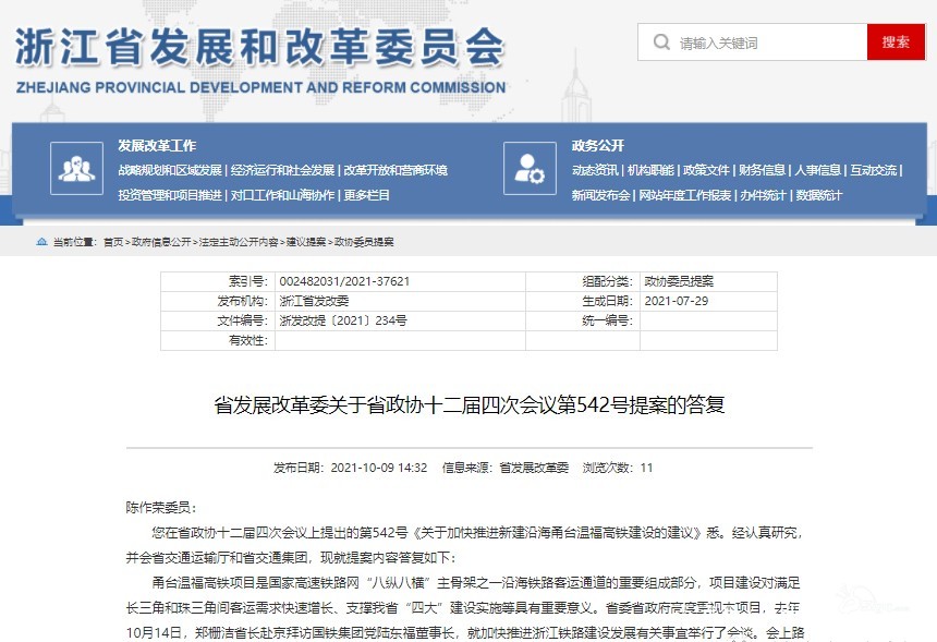 本帖最后由 qts666 于 2021-10-12 08:37 编辑 发改委已经明确放出消息,温福高铁年内实施前期工作,利好温州东。 乡亲们离实现坐S2去温州东坐高铁的愿景近了一大步!