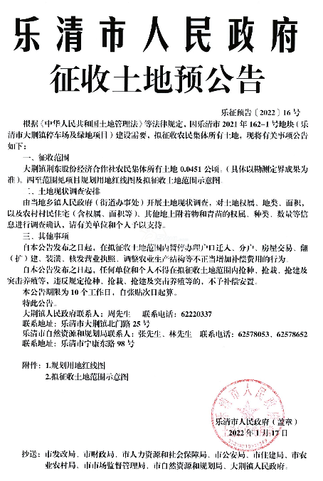 本次地征涉及城东街道、柳市镇、大荆镇、南岳镇、仙溪镇! 来源:乐清人民政府网