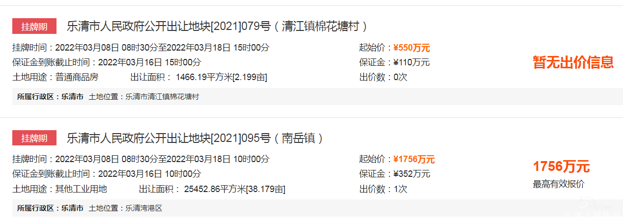 这两块地都不是乐清市中心的,后天截止,你们觉得能拍出去吗