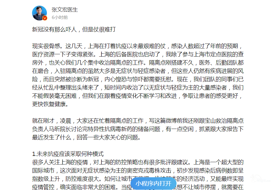 张宏文说:新冠没那么吓人,但是仗很难打