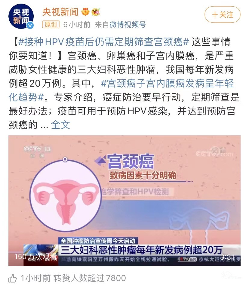 这两天看到说九价三针可以打一针,但打了疫苗也要定期做筛查!