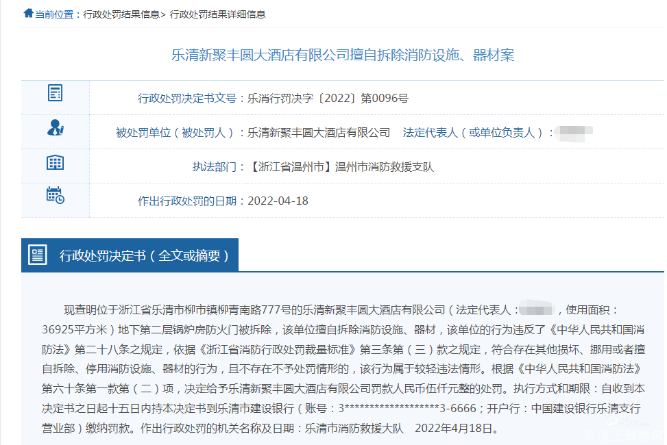 这酒店位于柳市,你们熟吗?擅自拆除地下第二层锅炉房防火门被发现!罚款5000元!