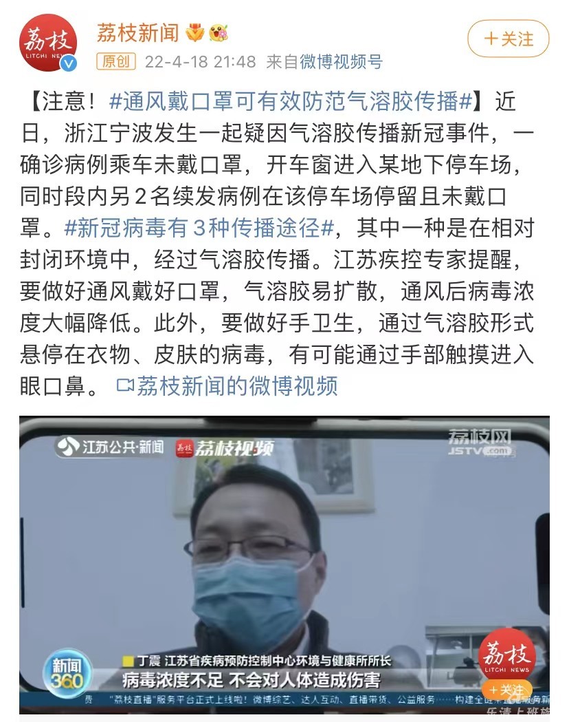 本帖最后由 樱桃小姐姐 于 2022-4-20 09:20 编辑 前段时间,有一起疑因气溶胶传播新冠事件引起广泛的关注!有专家说,通风戴口罩可有效防范气溶胶传播!此外还要做好手部卫生哦~