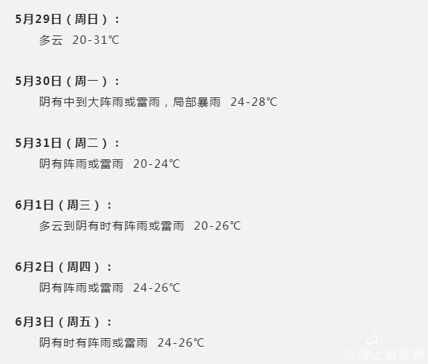 按理来说,立夏之后差不多就夏天了吧?但昨天还阳光明媚,今天就下起大雨怪冷的!看了下天气预报!5.29号也就是明天!乐清要进入气象意义上的夏天了!最高温31℃!