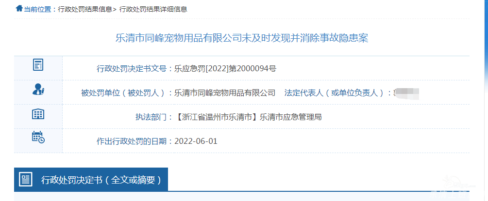被罚的原因是未及时发现并消除事故隐患,具体的也没写是什么事故隐患....