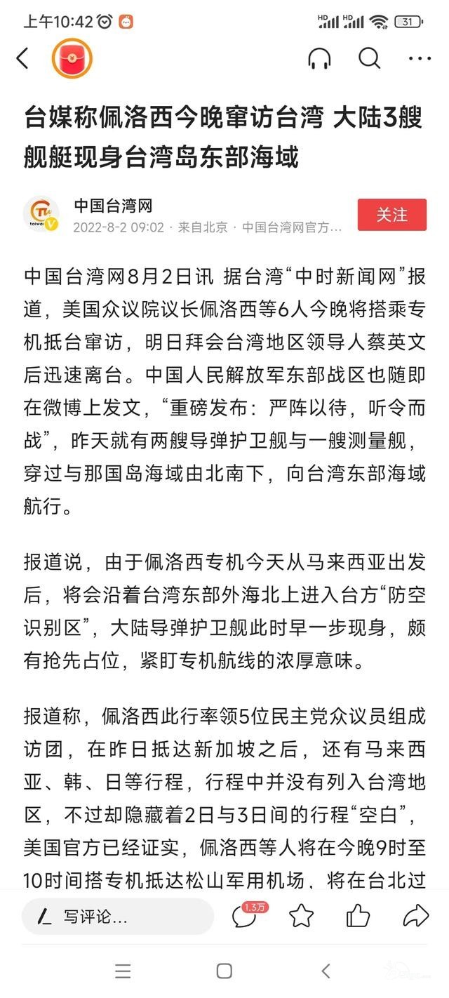 美国国会众议长佩洛西预计将在8月2日晚上10时30分抵达中国台湾松山机场,入住台北君悦酒店,3日上午8时与民进党当局**人蔡英文会面,预计上午10时左右离台。 如果这消息属实,那么将极大挑动台海危机的爆发,甚至引 ...