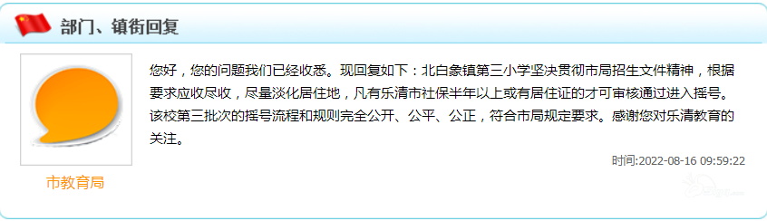 网友:我要投诉北白象镇第三小学在第一期第三批次招生存在不公平不公正超范围招生,学校把很多 不在片区内和一些社保居住证不达标的孩子违规放入摇号池,导致第三批次大大超过录取名额,让本片区内手续正常的孩子和 ...