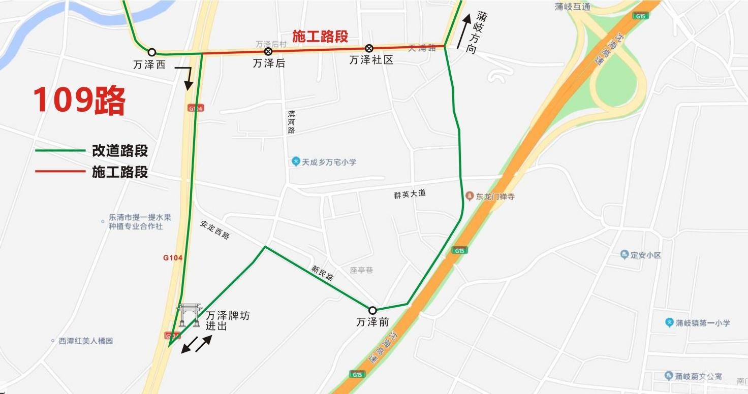 道路施工|关于临时调整109路、367路、61路公交线路的通知 因天成街道天浦路万泽路段封道施工,预计工期15天,公交车辆无法正常通行,自2022年10月12日起,乐清公交临时调整109路、367路、61路等3条公交线路走向,具 ...