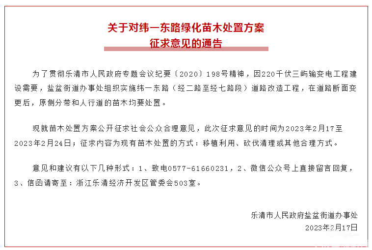 征求内容是苗木的处置方式,看了这个通告才知道这些处置方式还要征求广大人民群众的意见?