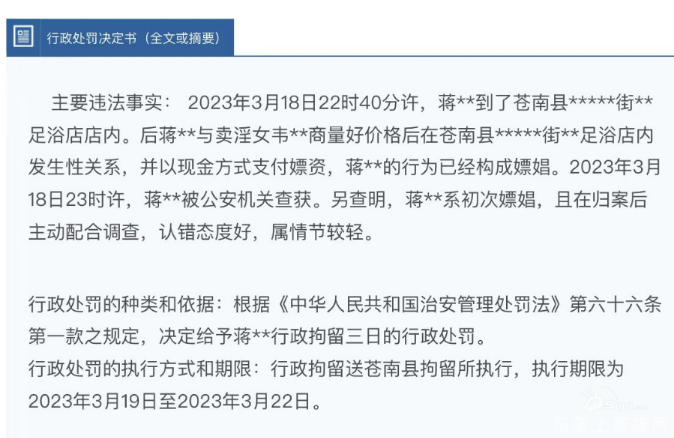 温州一足浴店被查!多名嫖客和卖淫女被抓 早上在浙江政务服务网上看到,浙江温州苍南的一家足浴店因卖淫嫖娼被警方给“一锅端”了!共有6名男女被拘留。 来源:浙江政务服务网