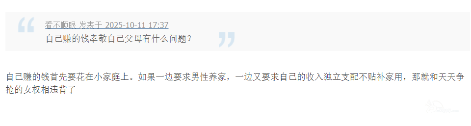 入魔神仙 发表于 2025-10-13 10:43 我媳妇自己赚钱,也总是给她娘家发红包买东西,我真没觉得咋滴。 而且,我自己也有给买东西。 媳妇也是一个劳动力啊!相当于免费来你家帮忙了,你去请个保姆都要工资。做男人要大气。 |