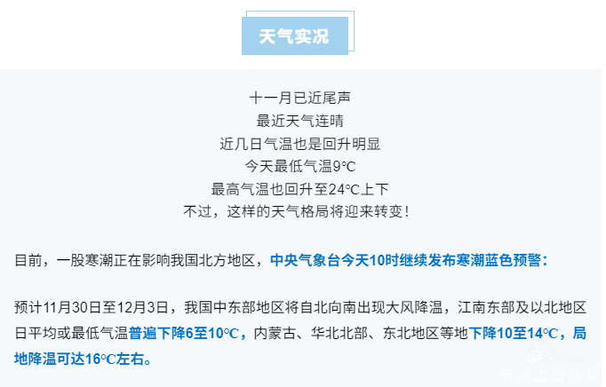 暴跌10℃!寒潮预警!这天起影响乐清……