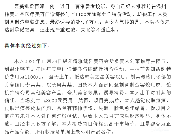 乐清一女子愤怒投诉:诱导我花费4.8万!