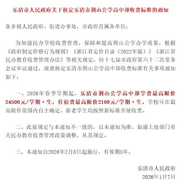 24500元/学期!乐清一学校学费核定中!