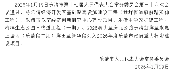 乐清2026年重大投资建设项目!知名中学改扩建、海洋生态公园……