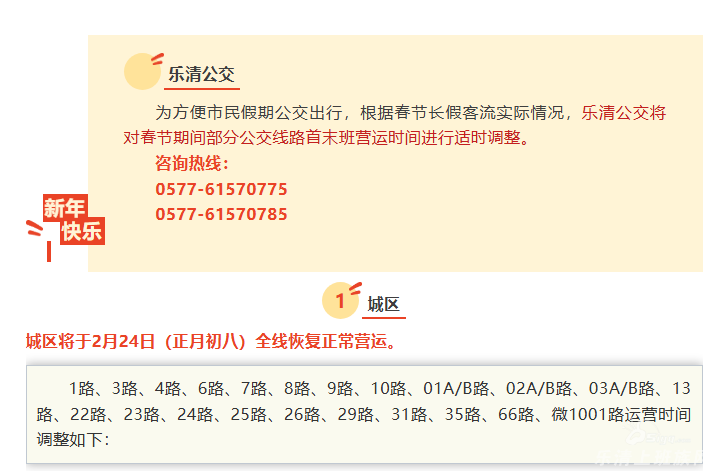 出行必备!春节期间乐清公交营运时间有调整