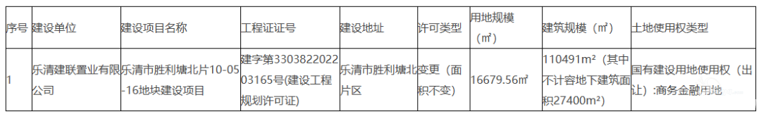 乐清市自然资源和规划局建设工程规划许可证(含乡村建设规划许可证)批后公布
