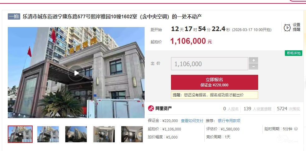 法拍:熙岸雅园110w