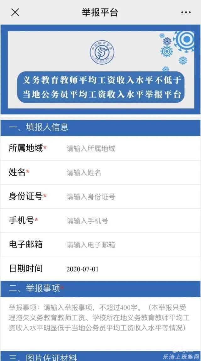 7月1日起,国务院教育督导委员会办公室在“微言教育”和“中国教育督导”微信公众号同步开通“义务教育教师平均工资收入水平不低于当地公务员平均工资收入水平举报平台”。 如果有拖欠 ...