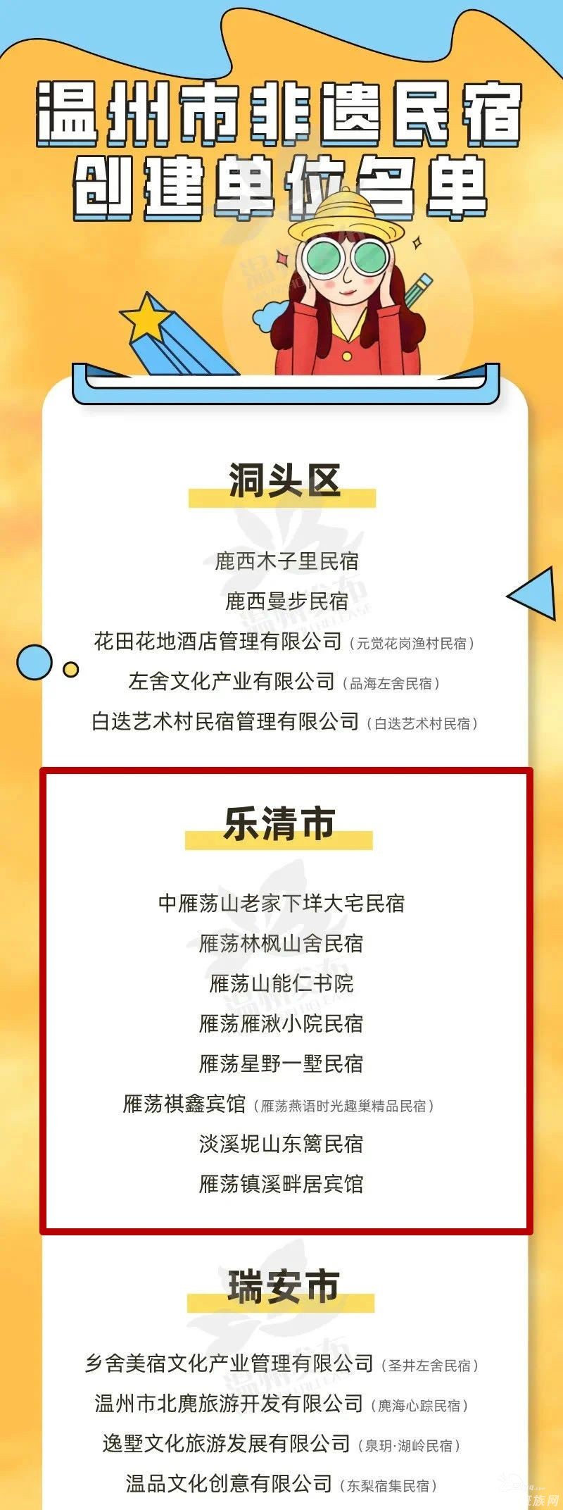 10月中旬,在民宿业主自愿申报和各地文旅局推荐的基础上,温州市文化广电旅游局召开了非遗民宿创建单位评估会。经民宿业主的陈述、专家组的评估,选定33家民宿作为我市非遗民宿创建单位,其中乐清有8家上榜。和小编 ...