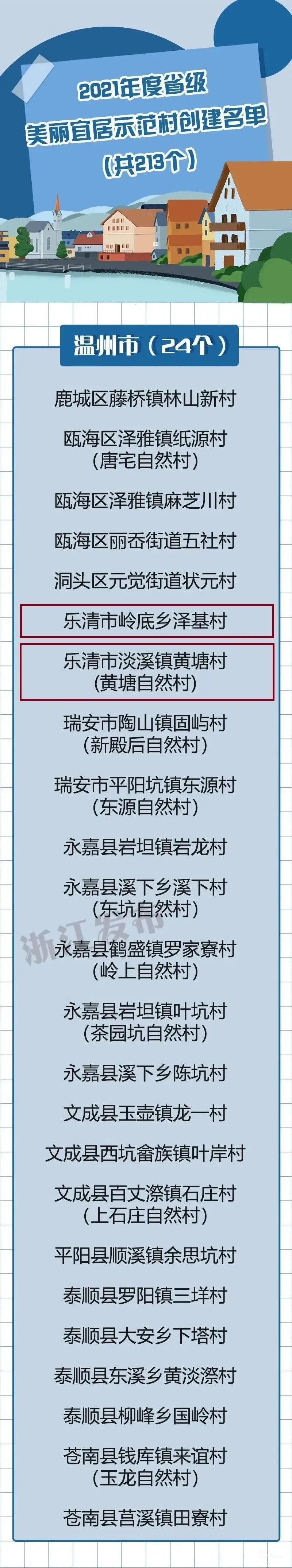 近日,浙江省城乡环境整治工作领导小组美丽宜居村镇示范办公室、浙江省住房和城乡建设厅公布了2021年度省级美丽宜居示范村创建及传统村落风貌保护提升和村庄设计与农房设计落地试点名单。 乐清有哪些村上榜?一起 ...