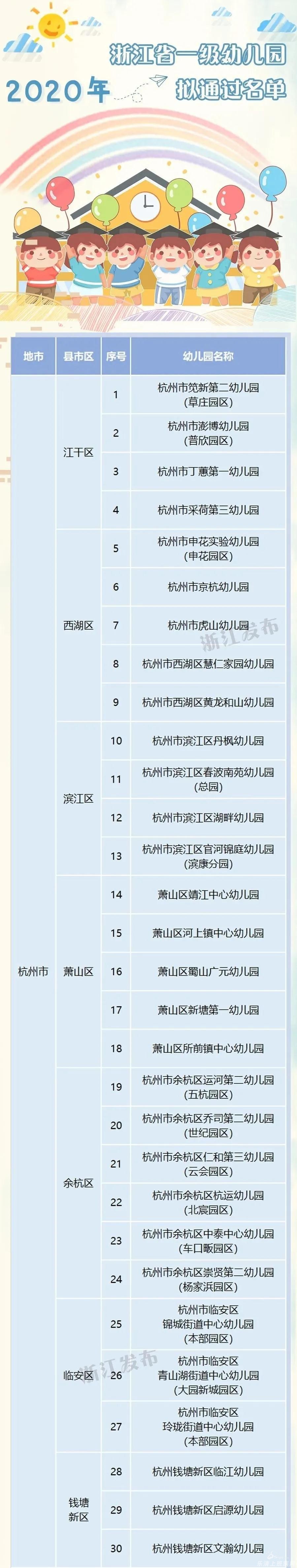 近日,经各单位申报、专家评审,省教育厅拟认定杭州市笕新第二幼儿园(草庄园区)等96所幼儿园为浙江省一级幼儿园,其中乐清有3家,看看在你家附近吗? 来源:浙江发布