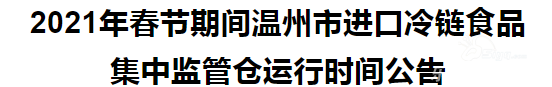 请各进口冷链食品企业结合实际提前预约安排。 温州市进口冷链食品物防工作组2021年2月7日