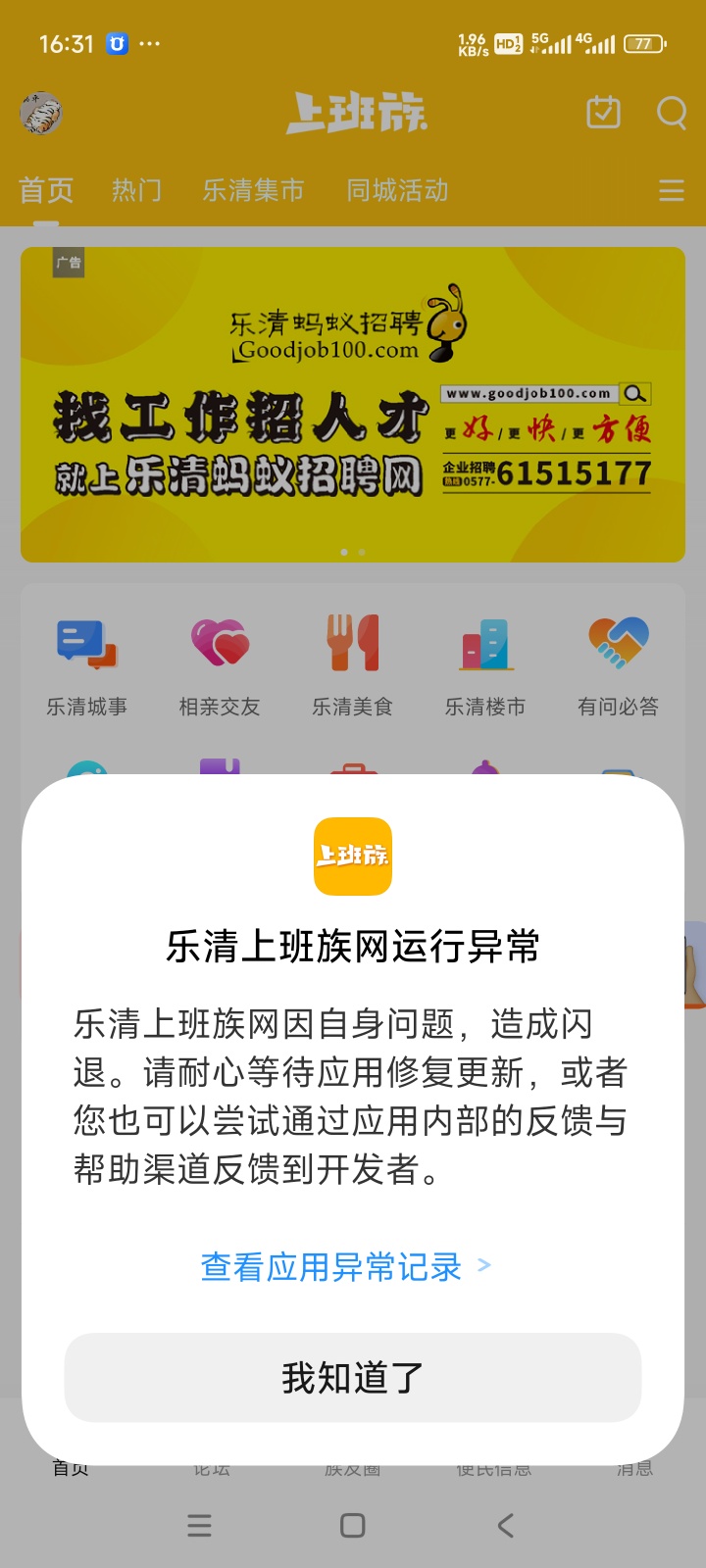 每晚20:00来乐清上班族网APP,回帖就有红包领!