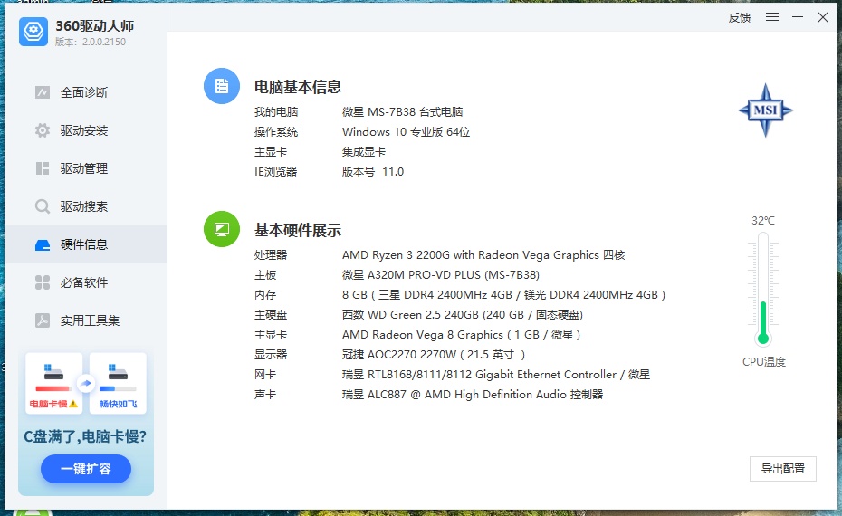 出台式电脑主机,AMD R3 2200G处理器,8G DDR4内存,240G固态硬盘,带机箱电源,系统Win10专业版,办公家用都合适。