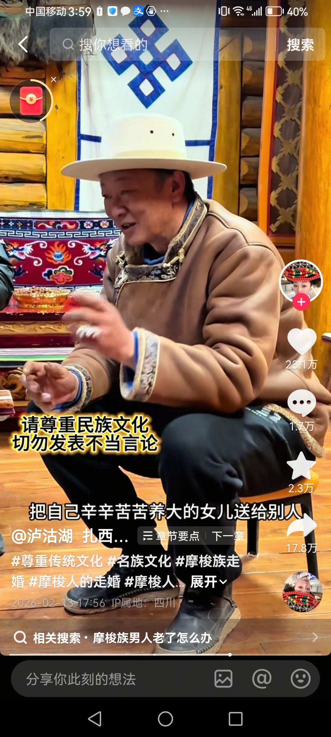 摩梭族把女儿留在家里的同时,却不会把儿子赶走。父系家族里,女儿到年龄了总是要被赶走。我一直觉得我们汉族婚嫁的确有点神经的。自己辛苦养大的女儿推出去跟一堆没有血缘关系的外人生活,被欺负被打死的女人太多了,反正是别人家的女儿不心疼,往 ...