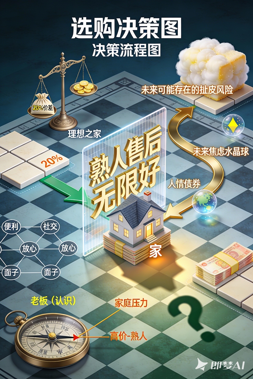 选择瓷砖时,男方发现完全相同的产品,在本地经销商A处比经销商B处贵20%。男方提议去B处购买,女方立即反对:“A的老板我爸妈认识,售后特别方便,一个电话人就到。B店是外地人开的,出了问题找不到人。” 女方父亲也帮腔:“装修是长 ...